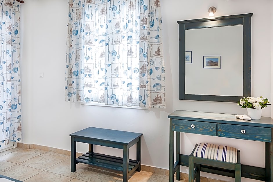 Located on the upper level, this apartment includes 2 separate bedrooms, a well equipped kitchenette and a spacious veranda with panoramic view to the sea and village.